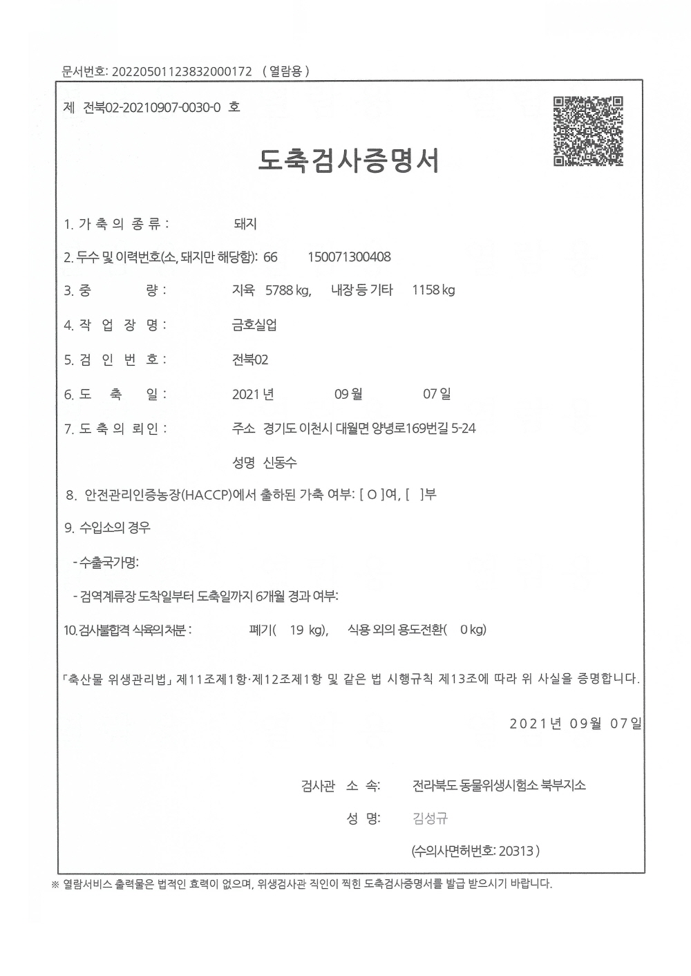 4월 5일 축산물 이력번호