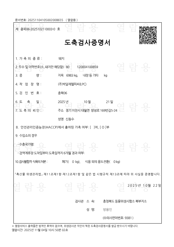 10월 27일 축산물 이력번호 조회